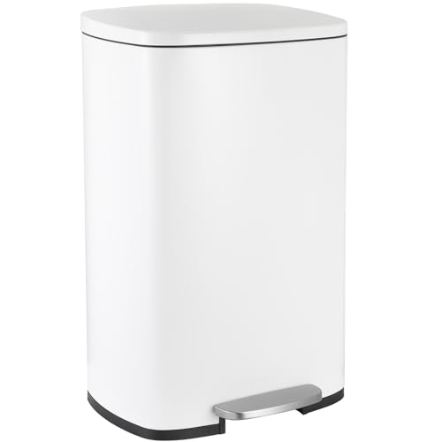 LIFERUN Rubbish Bin 50L, Stainless Steel Trash Can, Soft-Close Pedal Bin, Large Waste Bin with Lid, Removable Inner Bucket, Odor Isolation, for Kitchen, Bathroom, Office, Ivory White