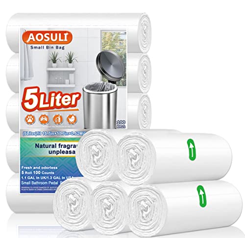 5Liter Bin Liners 100 Counts Small Bin Bags AOSULI 3-5L White Clear Trash/Garbage Bags for Office, Bathroom Pedal Bin,Bedroom Waste Bin,kitchen Food Waste andToilet Wastebasket