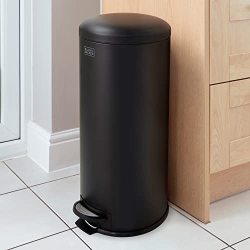 BLACK+DECKER 30 Litre Dome Kitchen Indoor Rubbish and Waste Pedal Bin with Soft Close Lid/Steel (Matte Black)