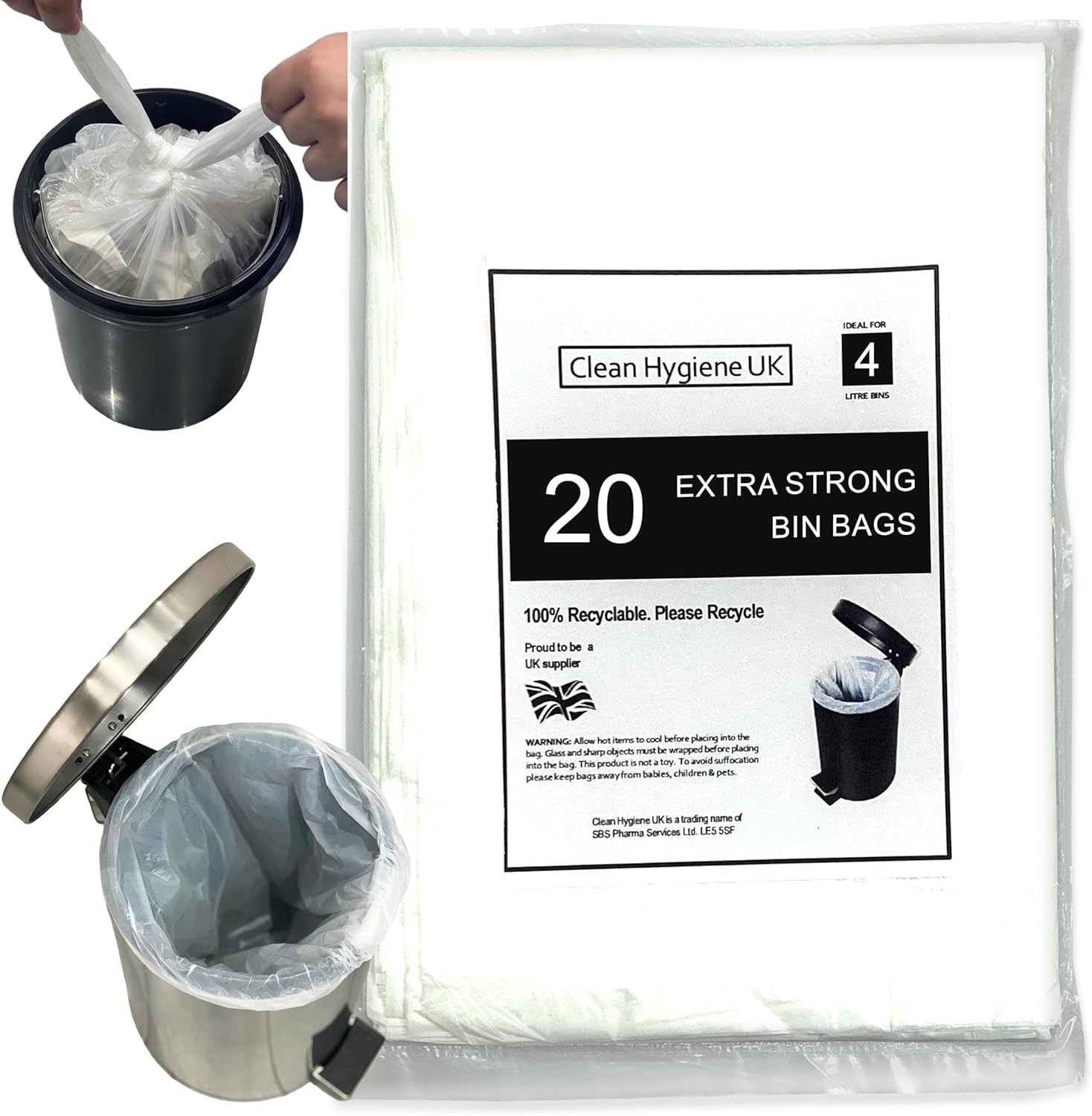 4L Bin Bags Extra Strong Extra Large 20 Count Small Waste Pedal Bin Liners 4 Li