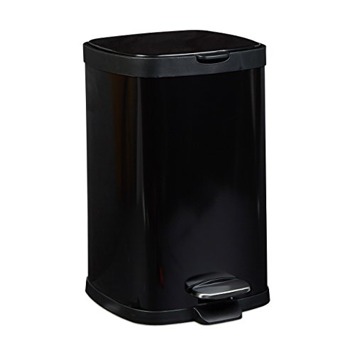 Relaxdays Foot Pedal Waste Bin, 12 L, Metal, Size: 40.5 x 26.5 cm Large with Foot Pedal, Black