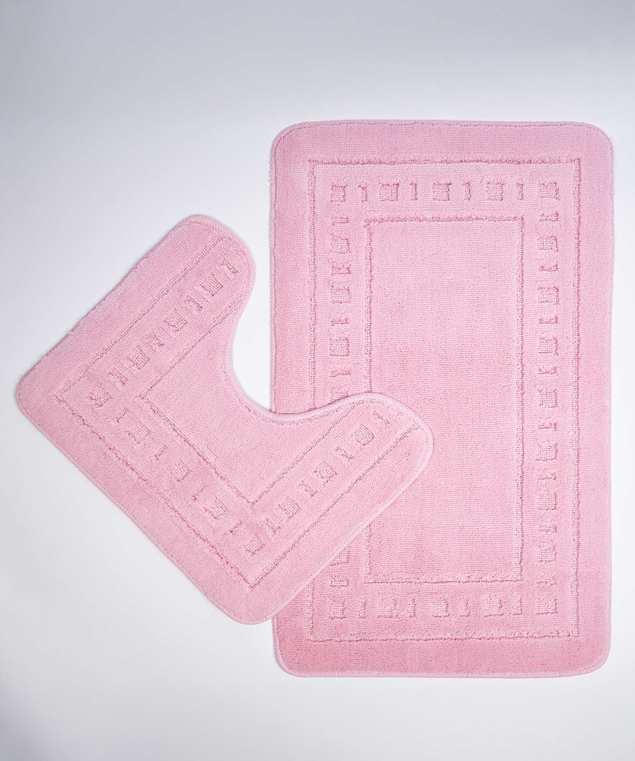 Rapport Home Feet Bath and Pedestal Mat Set, Cotton, New Pink, 80 x 50 x 2 cm
