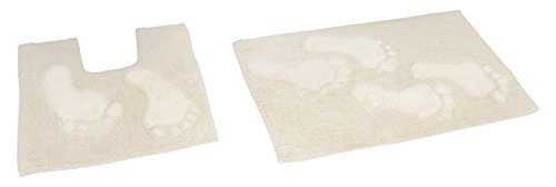 Rapport Home Feet Bath and Pedestal Mat Set, Cotton, Cream, 80 x 50 x 2 cm