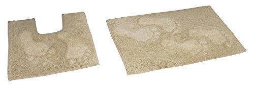 Rapport Home Feet Bath and Pedestal Mat Set, Cotton, Natural, 80 x 50 x 2 cm