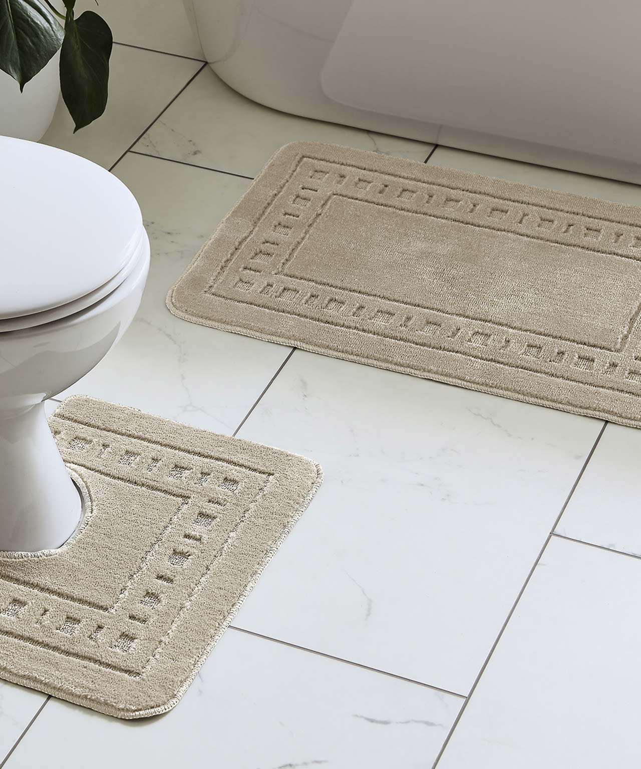 Greek Bath Mat 2 Pcs Set Non-Slip Bath Rug Toilet Mat Washable Bathroom Mats Rugs Absorbent Soft Rug for Bathtub Bathroom Includes 1 Bath Mat (50 X 80cm) And 1 Pedestal Mat (50 X 40cm) (CREAM)