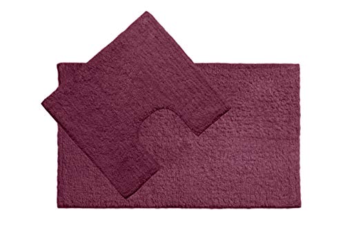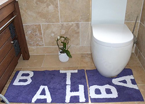 Rapport Home Text Bath and Pedestal Mat Set, Cotton, Violet, 80 x 50 x 2 cm