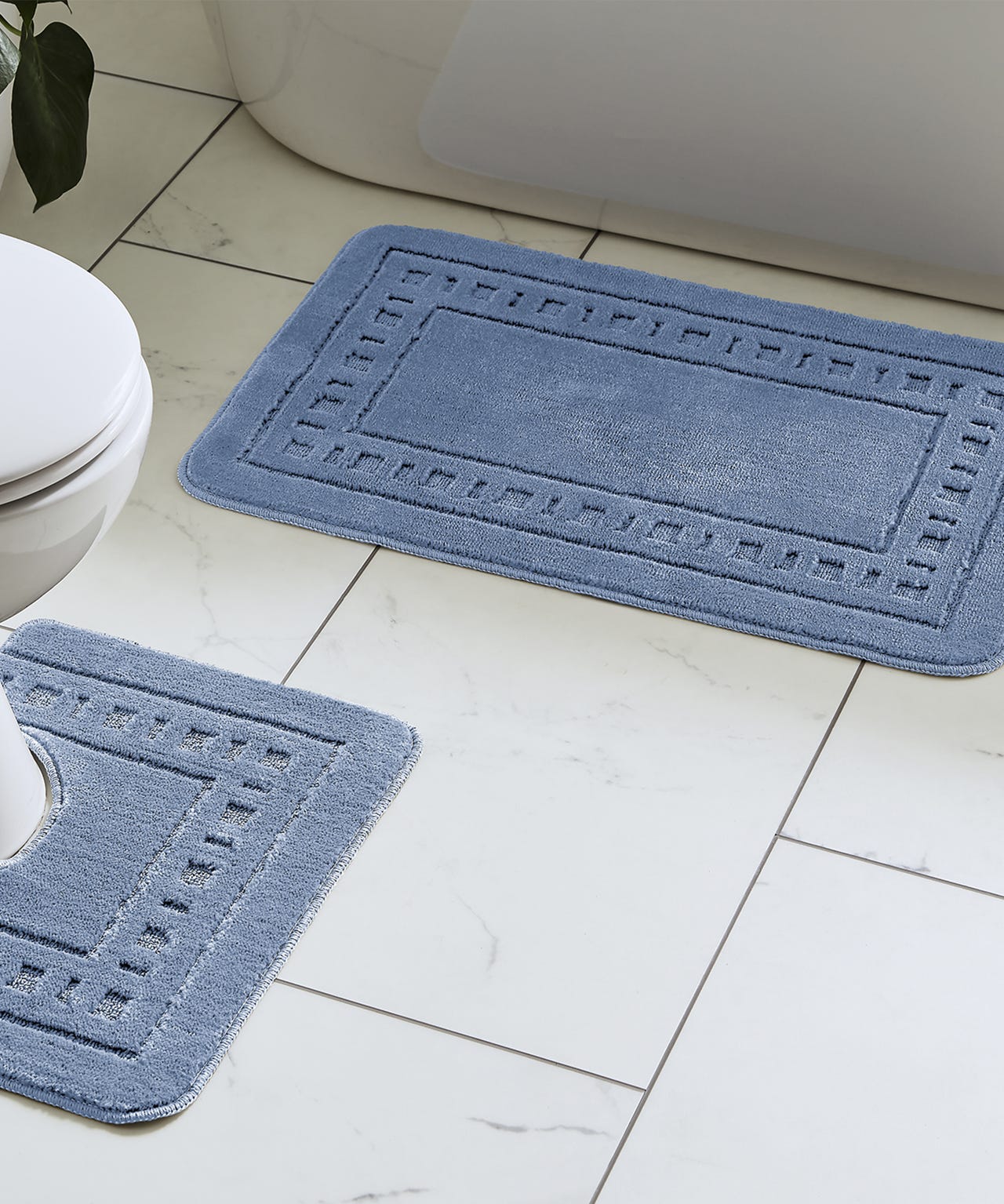 Greek Bath Mat 2 Pcs Set Non-Slip Bath Rug Toilet Mat Washable Bathroom Mats Rugs Absorbent Soft Rug for Bathtub Bathroom Includes 1 Bath Mat (50 X 80cm) And 1 Pedestal Mat (50 X 40cm) (BLUE)