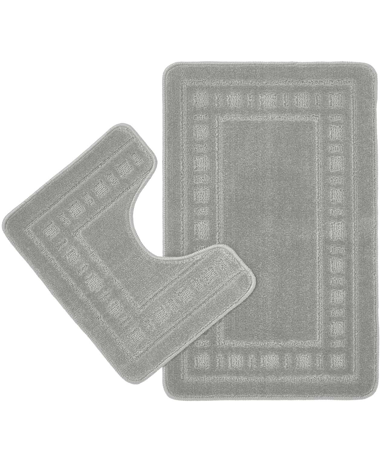 Kampala Hill Diem Bath Mat 2 Piece Set Non-Slip Pedestal and Bath Mat Toilet Bathroom Rug - Silver