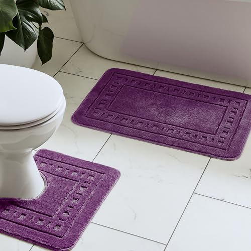 Greek Bath Mat 2 Pcs Set Non-Slip Bath Rug Toilet Mat Washable Bathroom Mats Rugs Absorbent Soft Rug for Bathtub Bathroom Includes 1 Bath Mat (50 X 80cm) And 1 Pedestal Mat (50 X 40cm) (BURGUNDY)