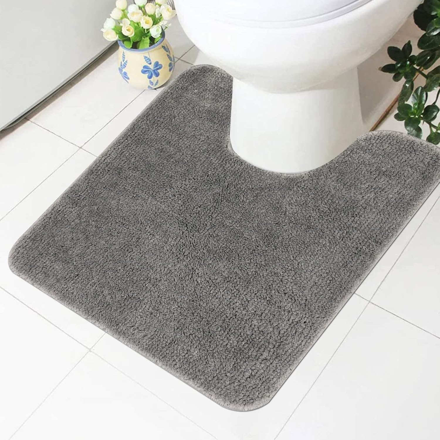 ZcrPrn Toilet Mat,Toilet Mats Pedestal Only,U-shape Soft Non one size, Grey