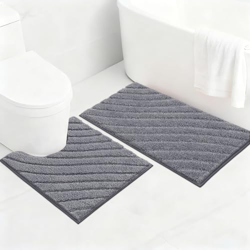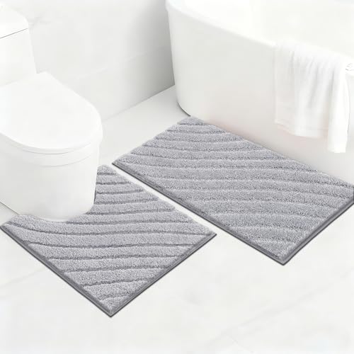 SHACOS Soft Bathroom Mat Sets 2 Piece Non Slip Absorbent Bath Mat Set Toilet Mats Machine Washable Bathroom Rug Pedestal Mats for Toilet, Light Grey, 45x65cm+U50x60cm