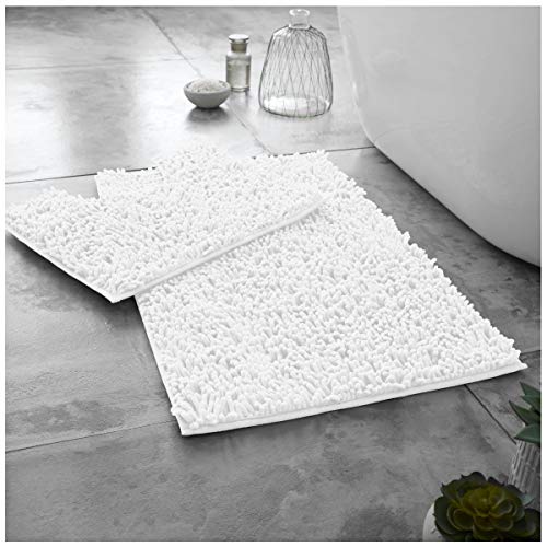 GC GAVENO CAVAILIA 100% Microfiber Toilet Rug Set, Loop Bath Mat Non Slip, Pedestal Mats For Bathroom, White, Regular (678588)