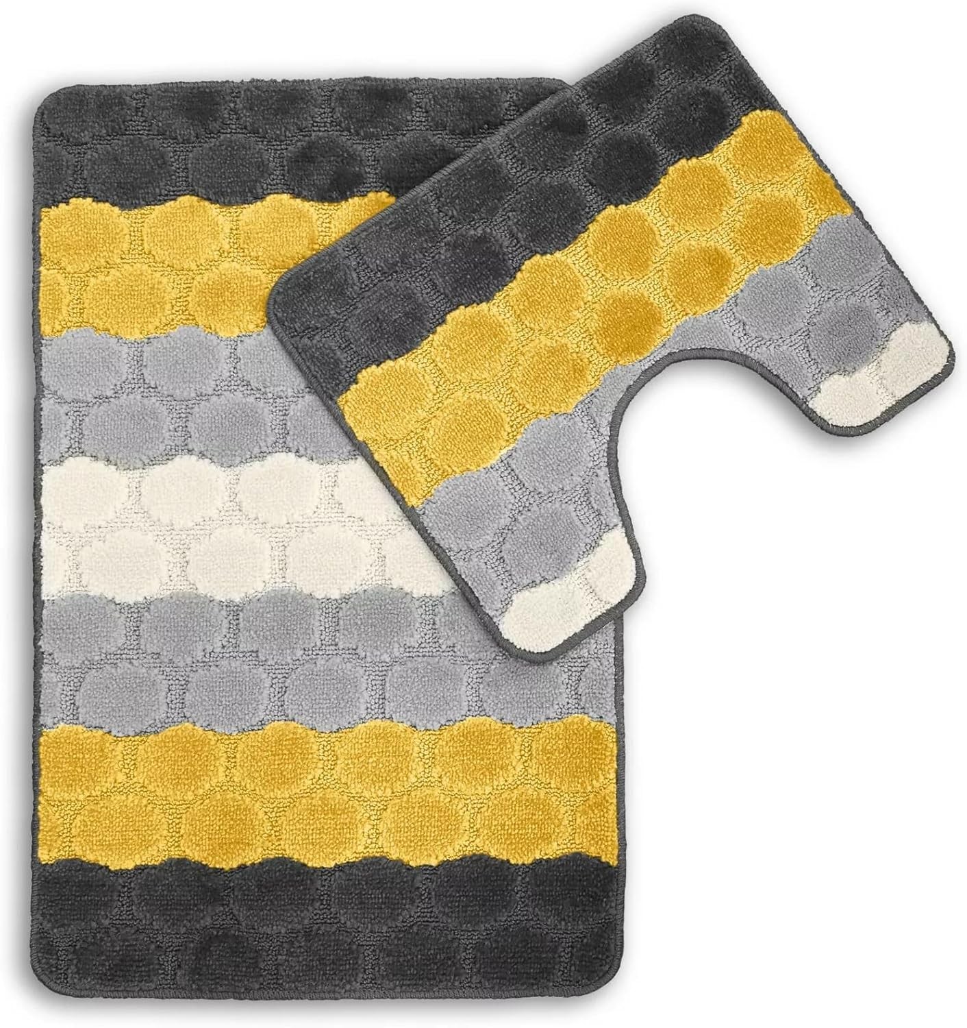 2pc Bath Mat Set Non Slip, Bath & Pedestal Mats, Hex Stripe Design For Bathroom Toilet, 2 Piece, Soft, Absorbent And Slip Resistant (Yellow)
