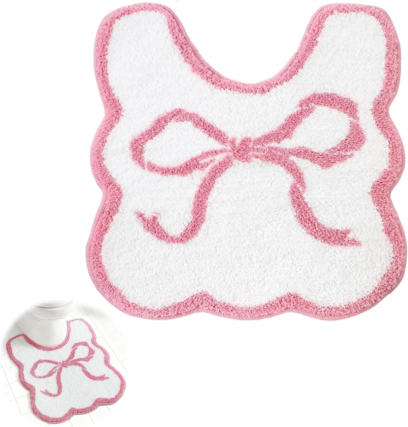 Pink Bow Toilet Mat with Non-Slip Backing, Soft Pedestal Mats for Bathroom Floo