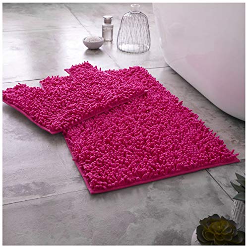 GC GAVENO CAVAILIA 100% Microfiber Toilet Rug Set, Loop Bath Mat Non Slip, Pedestal Mats For Bathroom, Fuchsia, Regular, 678663