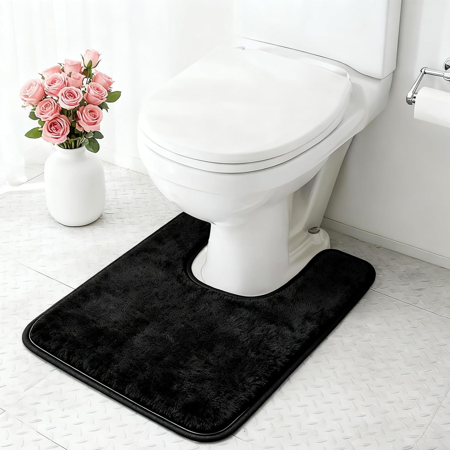 U-Shaped Pedestal Mat for Toilets, Toilet Mats Pedestal Only Black Bath Mat Toi