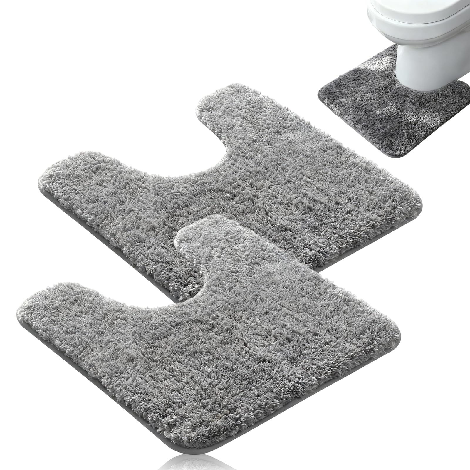 2 PCS Toilet Mats Pedestal Only, Absorbent Rug Non Slip one size, Grey