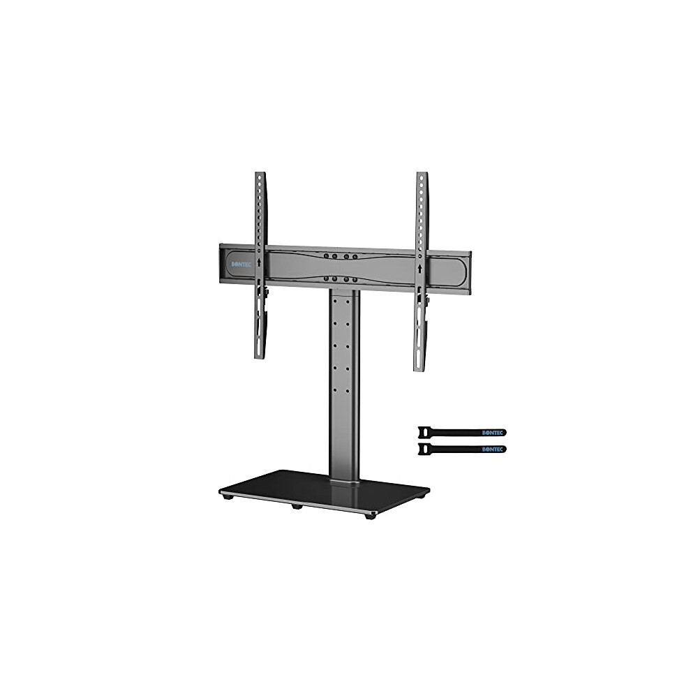 BONTEC Universal Table Top Pedestal TV Stand with Bracket for 26?-55? LCD/LED/Plasma TVs-Height Adjustable stand with 8mm Tempered Glass Base & Cable