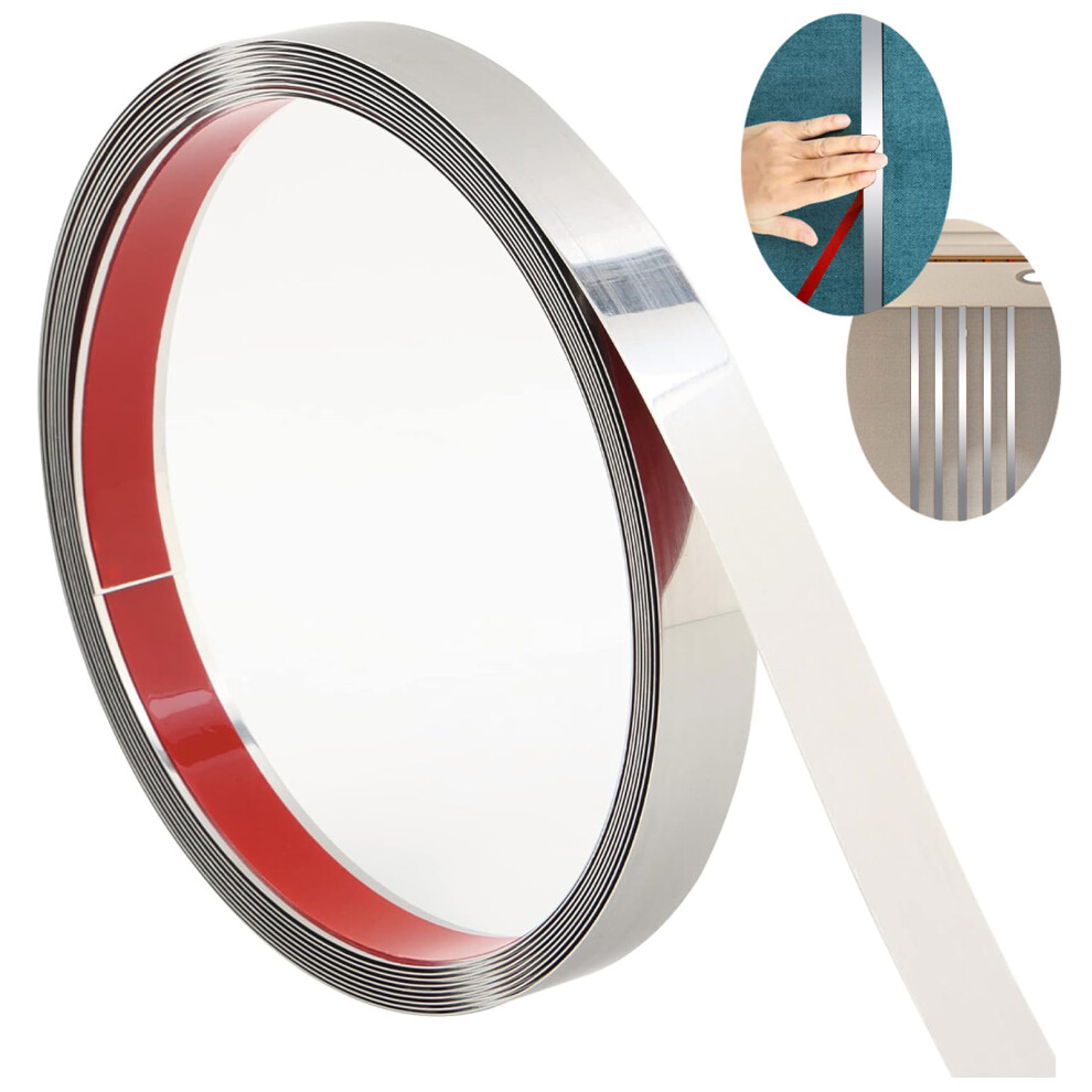 Mirror Polish Stainless Steel Strip for Edge Protection, Waterproof Self Adhesive Metal Trim for Tile and Glass Surfaces, Flexible Peel and Stick Mold