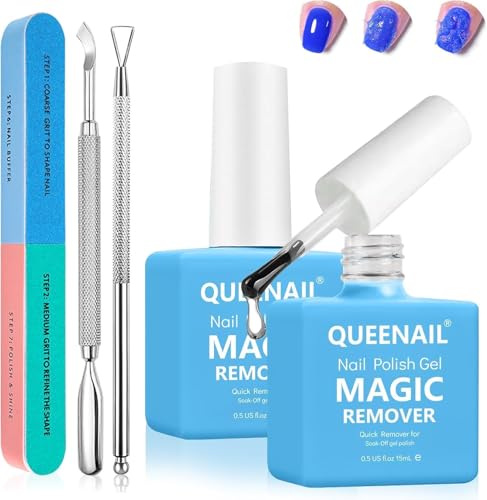 Gel Nail Polish Remover 2 Pcs, Peel off in 3-5 Min, Easy Quick Remove Gel Nail, Acrylic & UV Nail, Without Foil Soak or Wrap, Do Not Hurt Nails, with Nail File, Cuticle Pusher and Nail Polish Scraper