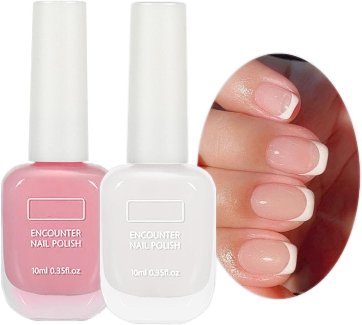 Peel Off Nail Polish Set, 2 PCS Quick Dry Varnish, White & Pink French Tip...