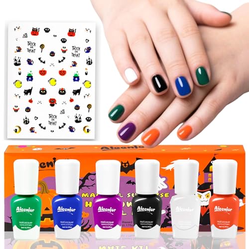 LOPHE Kids Nail Polish Set, 6 Color Non-Toxic Peel Off & Quick Dry Nail Art Kit, Water-Based Varnish for Girls, Gifts for Christmas Birthday