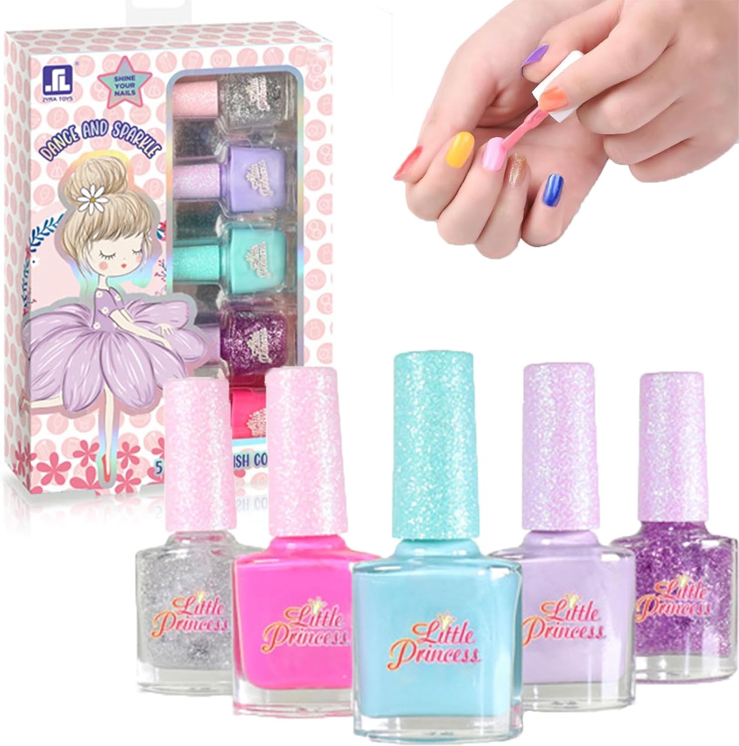 Kids Nail Polish Set 6 Colors Non Toxic Peel Off Quick Dry Toddlers Glitter Fun