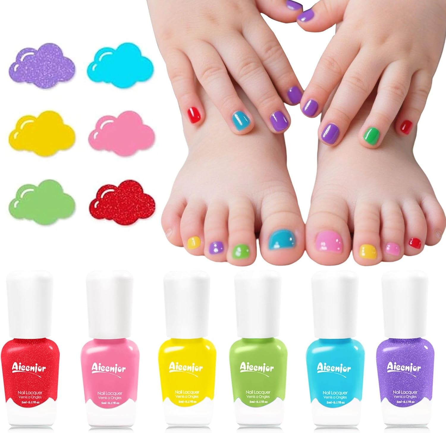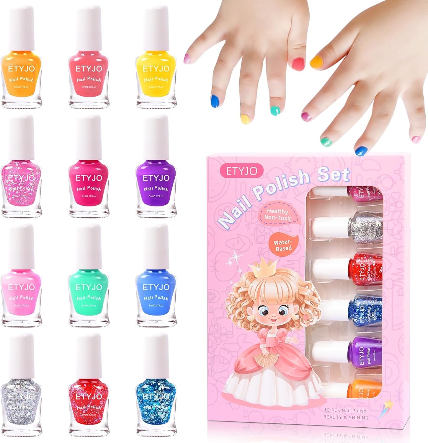 Water-Based Kids Nail Polish Set, Quick-Dry Non-Toxic Peel-Off Nail Polish for