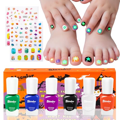 Aieenjor Kids Nail Polish Set, Glow in the Dark Nail Polish for Kids Non Toxic, Quick Drying, Water Based, Peel off, Luminous stickers make children the center of attention at the party