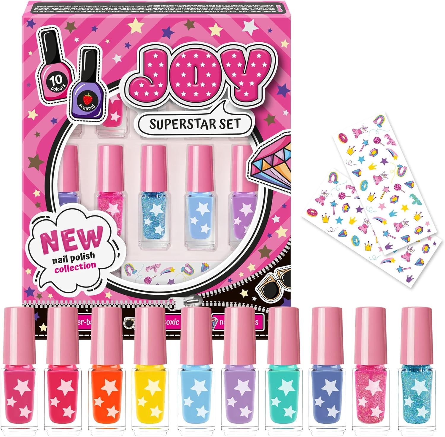 Joy Superstar Water-Based Peel-Off Nail Polish - 10 Colours (5 ml) with Nail De