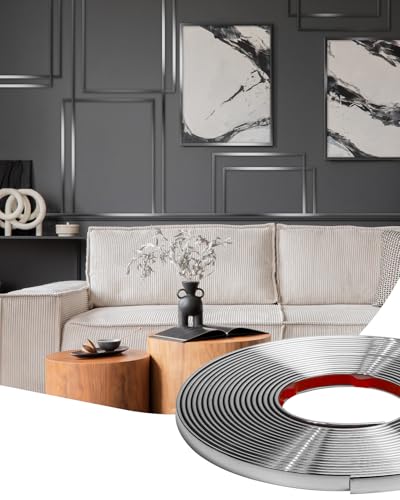 Lpraer 10M Stainless Steel Wall Molding Trim, Peel and Stick Wall Moulding, Metal Trim Flexible for TV Background Ceiling Floor Cabinet Tile Mirror Edge Self-Adhesive DIY Moulding,10mm Silver