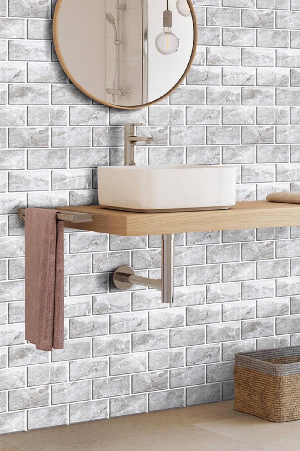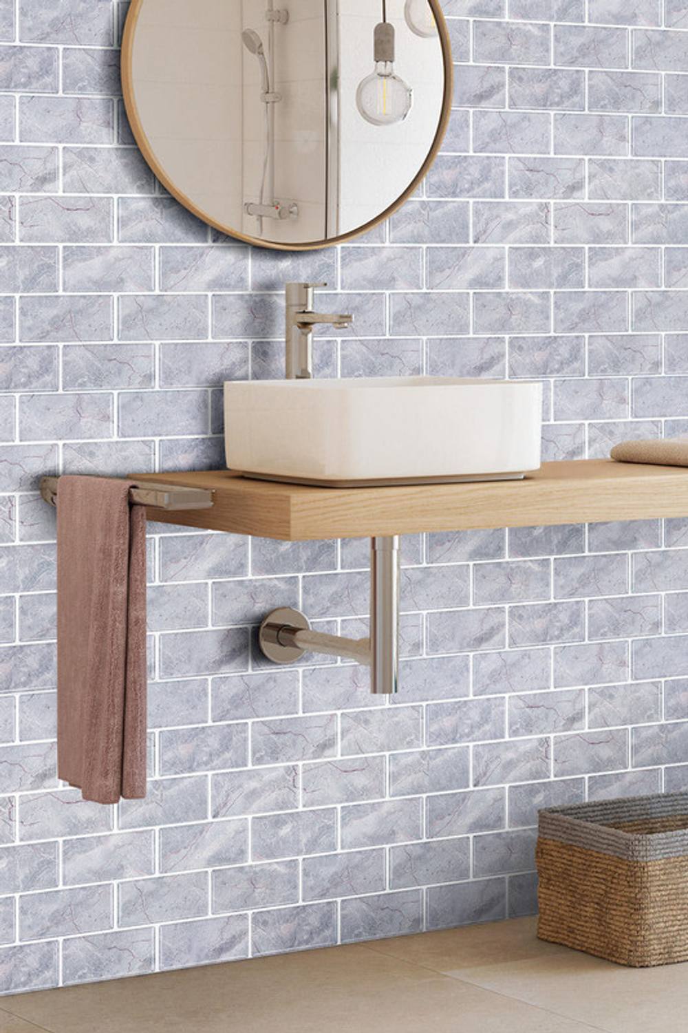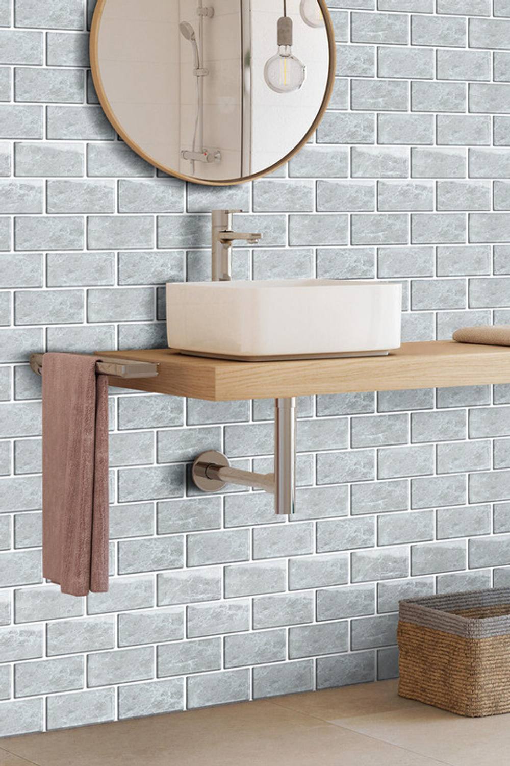 Living and Home 10 Pcs Peel and Stick 3D Maya Grey Marble Wall Tile Stickers Subway Tiles