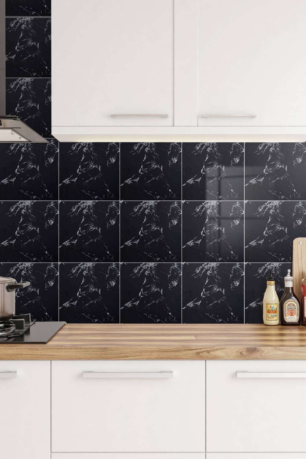 Living and Home 10pcs Peel and Stick Black Marble Wall Sticker, 40x40cm