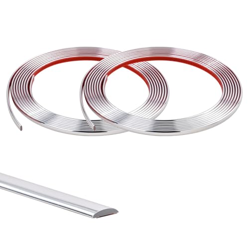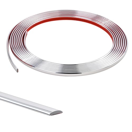 Orgthin 8M Peel and Stick Trim, Chrome Silver Flexible PVC Self Adhesive Moulding Strip, Waterproof Wall Trim, Tile Edge, Mirror & Window Frame Border (W:1 cm, T:0.25 cm)