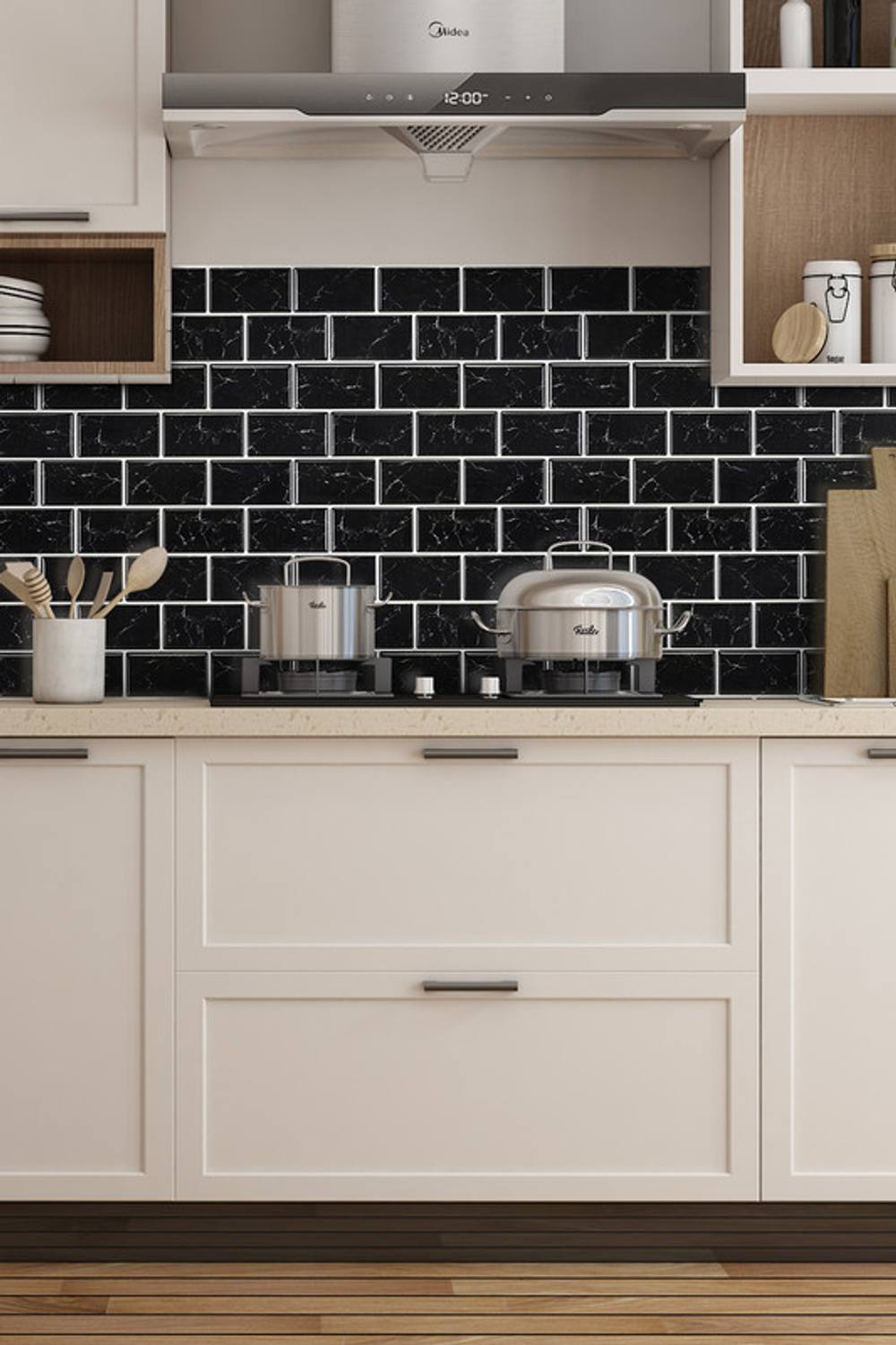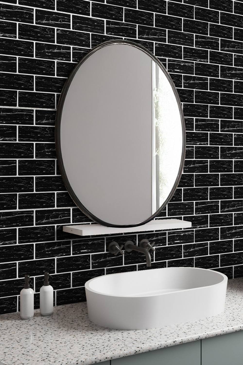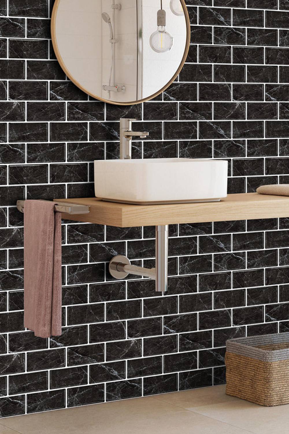 Living and Home 10 Pcs Peel and Stick 3D Nero Marquina Black Marble Wall Tile Stickers Subway Tiles