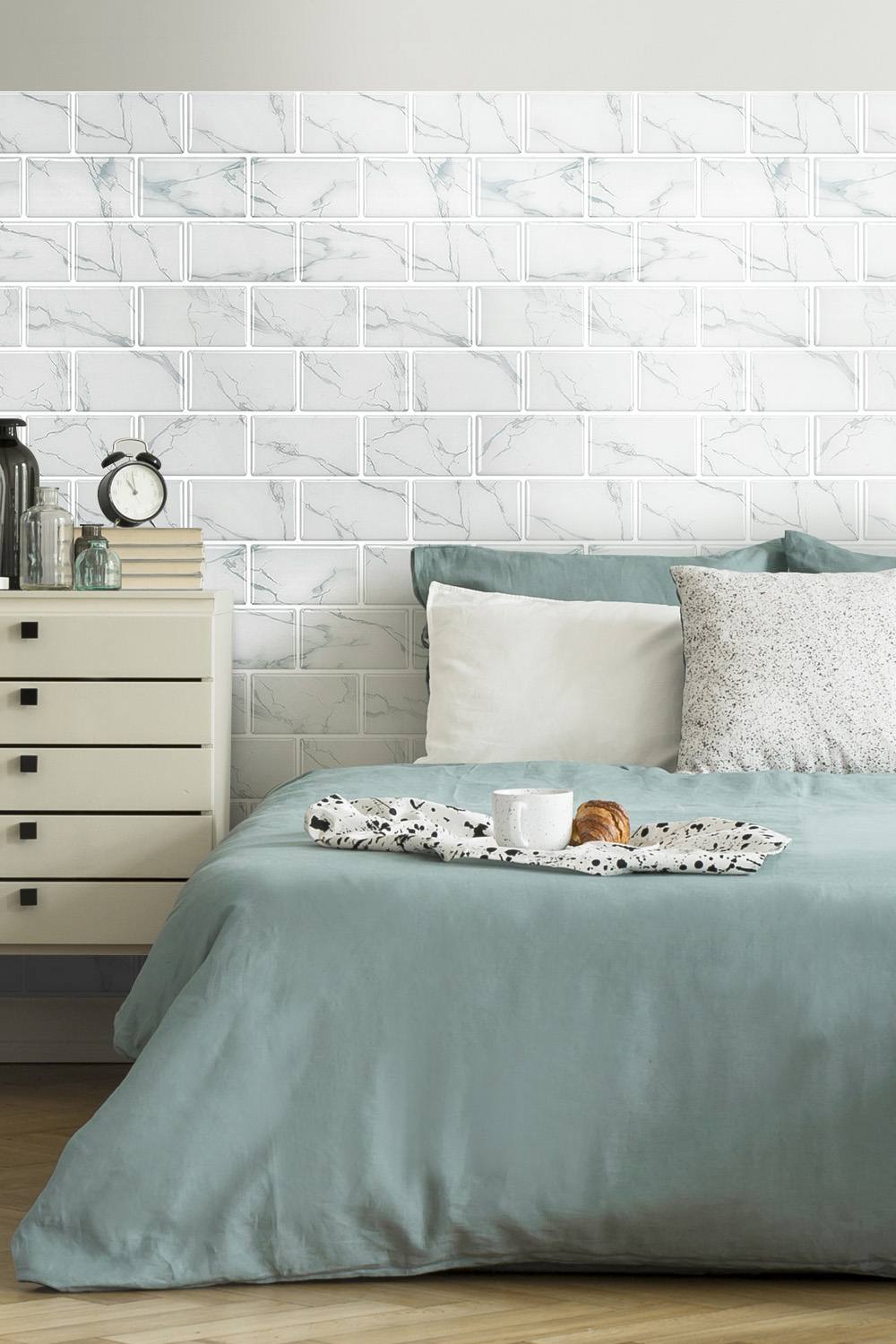 Living and Home 10 Pcs Peel and Stick 3D Volakas White Marble Wall Tile Stickers Subway Tiles