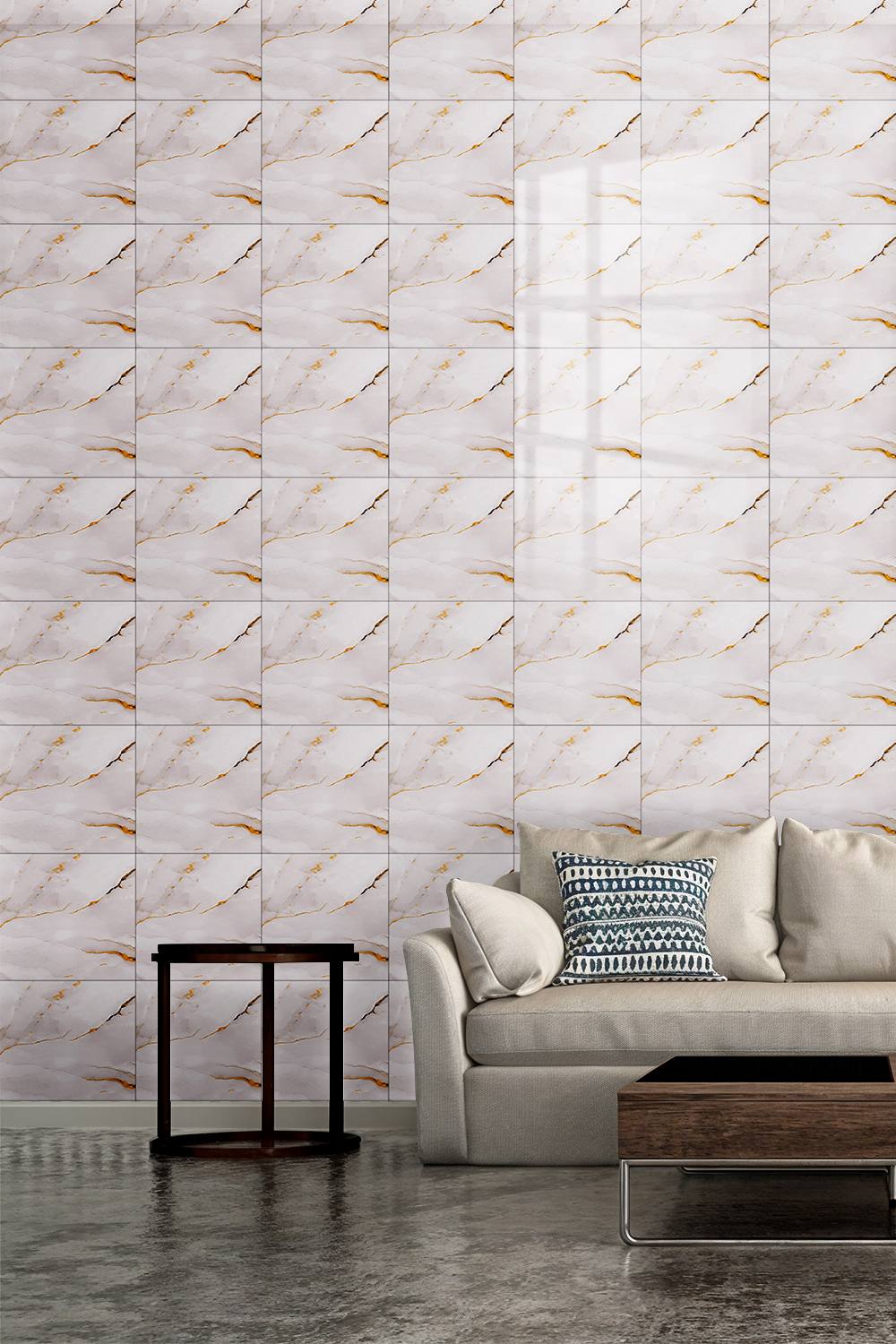 Living and Home 10pcs Peel and Stick White Marble Gold Cracked Wall Sticker, 40x40cm