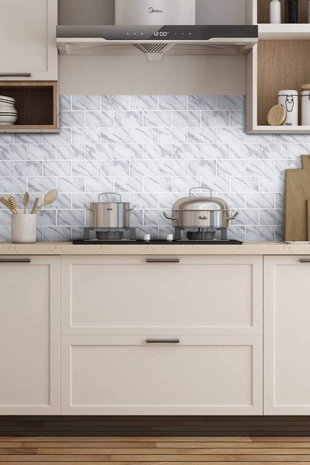 Living and Home 10 Pcs Peel and Stick 3D Calaeatta White Marble Wall Tile Stickers Subway Tiles
