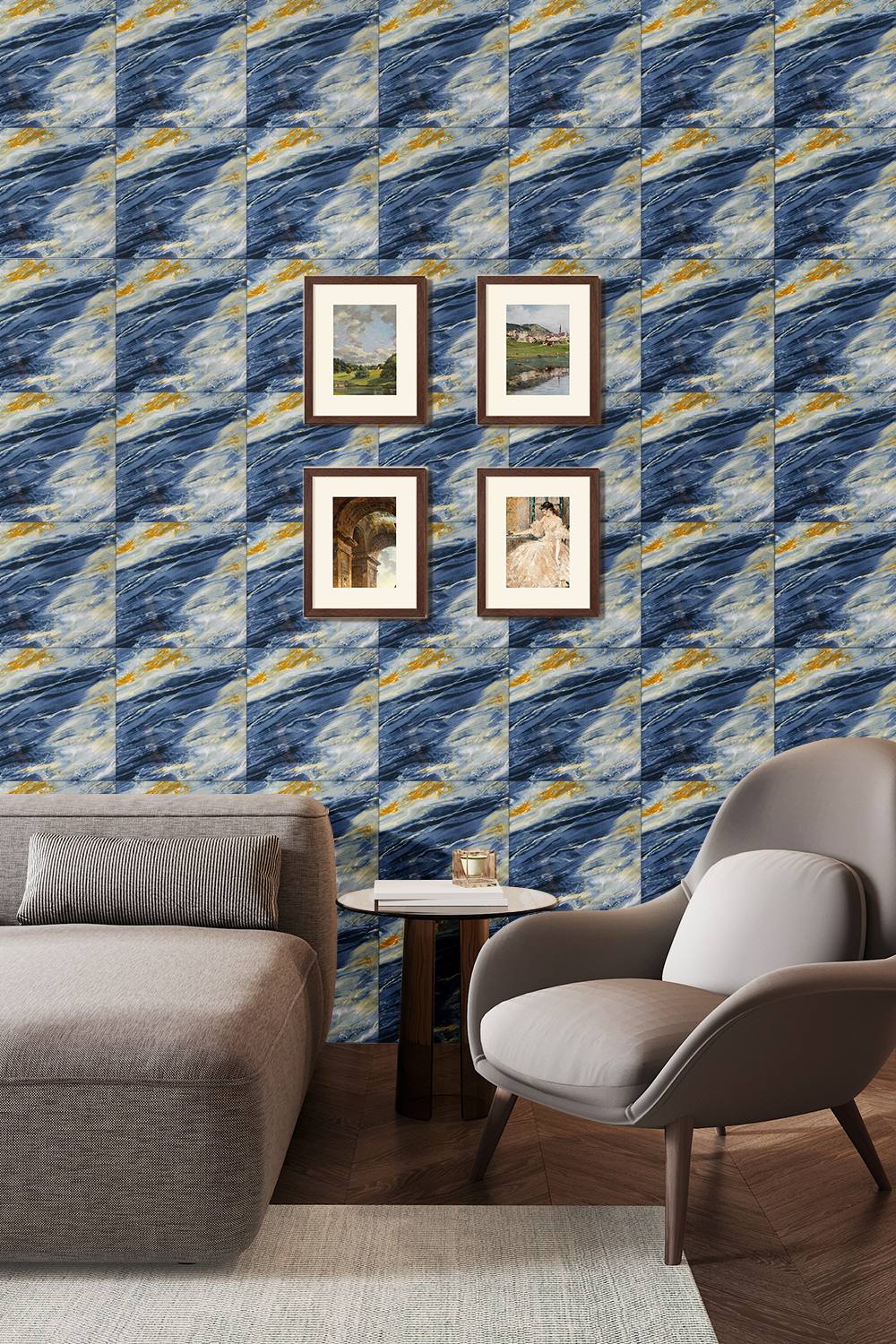 Living and Home 10pcs Peel and Stick Blue Gold Marble PVC Wall Sticker, 40X40cm