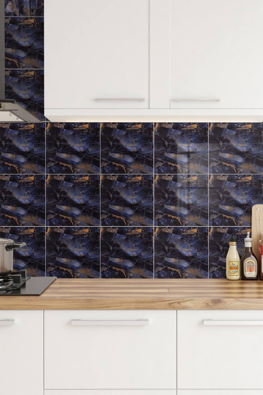 Living and Home 10pcs Blue Black Gold Marble Peel and Stick PVC Wall Tile Sticker, 40x40cm