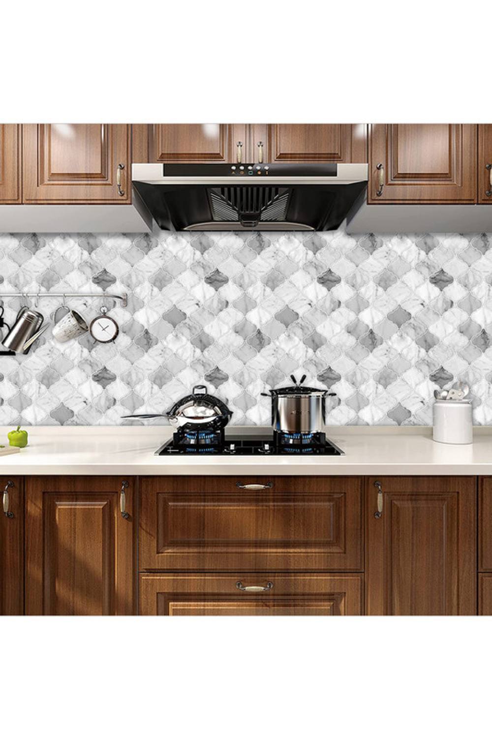 Tarwanear Marble Tile Stickers 60 x 30cm 10PCS Self Adhesive Wall Tiles Bathroom Waterproof Peel and Stick Wall Moulding Panels PVC Stick on Tiles for Home Decor Kitchen Backsplash,Marble Grey