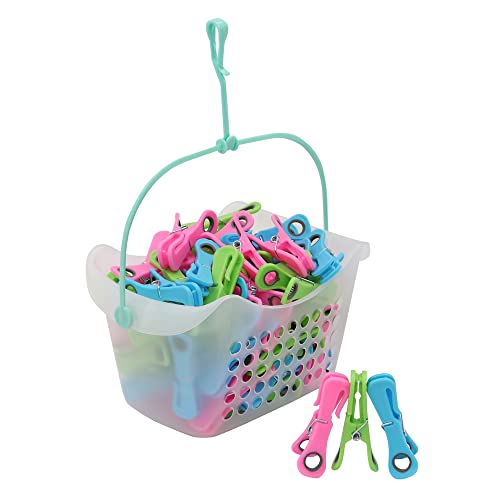JVL Plastic Peg Basket with 72 Prism Clip Pegs with hooks, Multicolor (19-216-274)