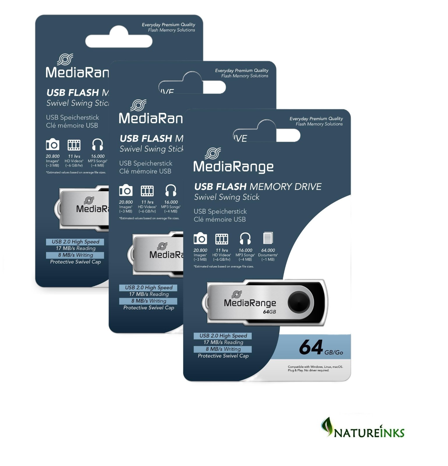 3 MediaRange MR912 Pen Drive Thumb Flash drive USB Stick 64GB 17MB/s USB 2.0