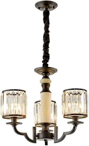 ZZLHY Black Crystal Chandelier – Adjustable Height Pendant Lamp, 3-Head Ceiling Light for Living Room, Nordic Decoration Fixture for Dining Room and Bedroom(3 Head)
