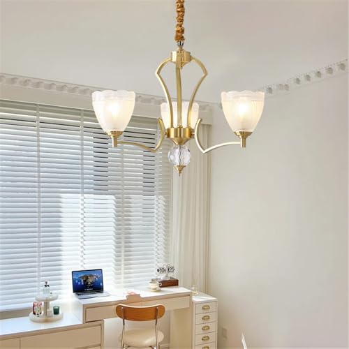 LYGXWJFC American Luxury Brass Chandelier LED Retro Creativity Living Room Restaurant Bedroom Study Villa Hotel Cafe Pendant Lamp (M 3 Lights)
