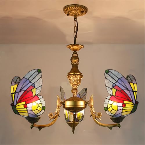 MMRTDJDR American Creativity Butterfly Chandelier LED European Luxury Art Living Room Restaurant Bedroom Hotel Villa Cafe Bar Club Color Glass Pendant Lamp (B 3 Lights)