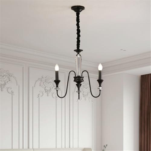 ZZLHY Black Crystal Chandelier – Adjustable Height Pendant Lamp, 3-Head Ceiling Light for Living Room, Nordic Decoration Fixture for Dining Room and Bedroom(6 Head)