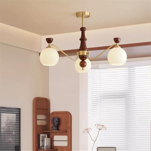 WGFJKI Hanging Lamp E27 Creative Dining Table Chandelier Wood Pendant Lighting Glass Shade Adjustable Height Pendant Lamp 3 Heads Dining Room Bedroom Office Bar Ceiling Lamp