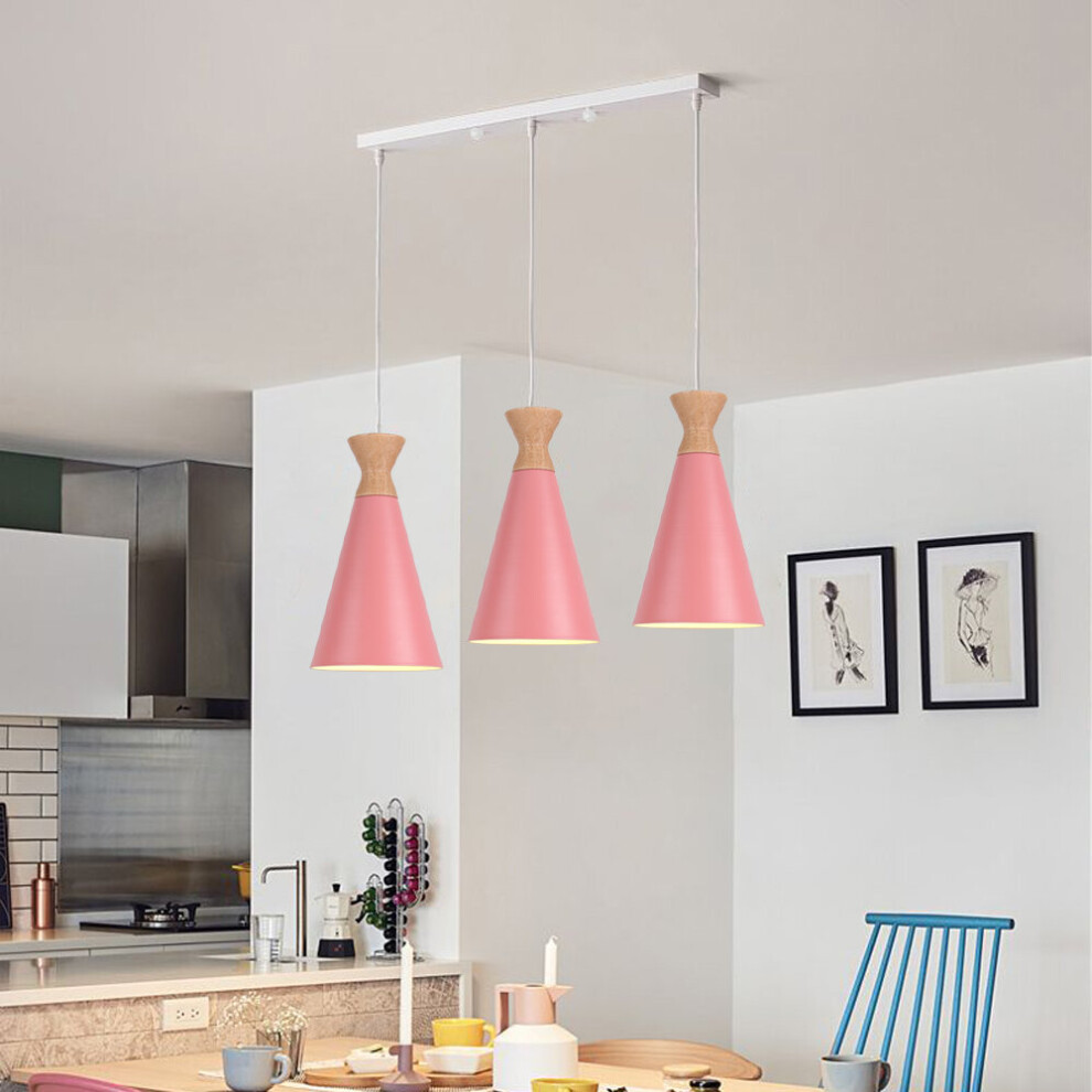 (B) Industrial Pendant Lamp 3 Lights Nordic Design Ceiling Lamp Pink Retro Modern Pendant Light for Dining Room, Kitchen, Bedroom, Office, E27-B