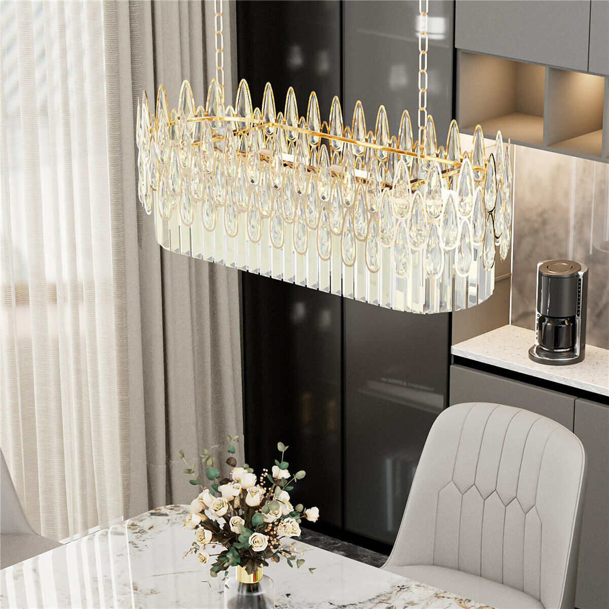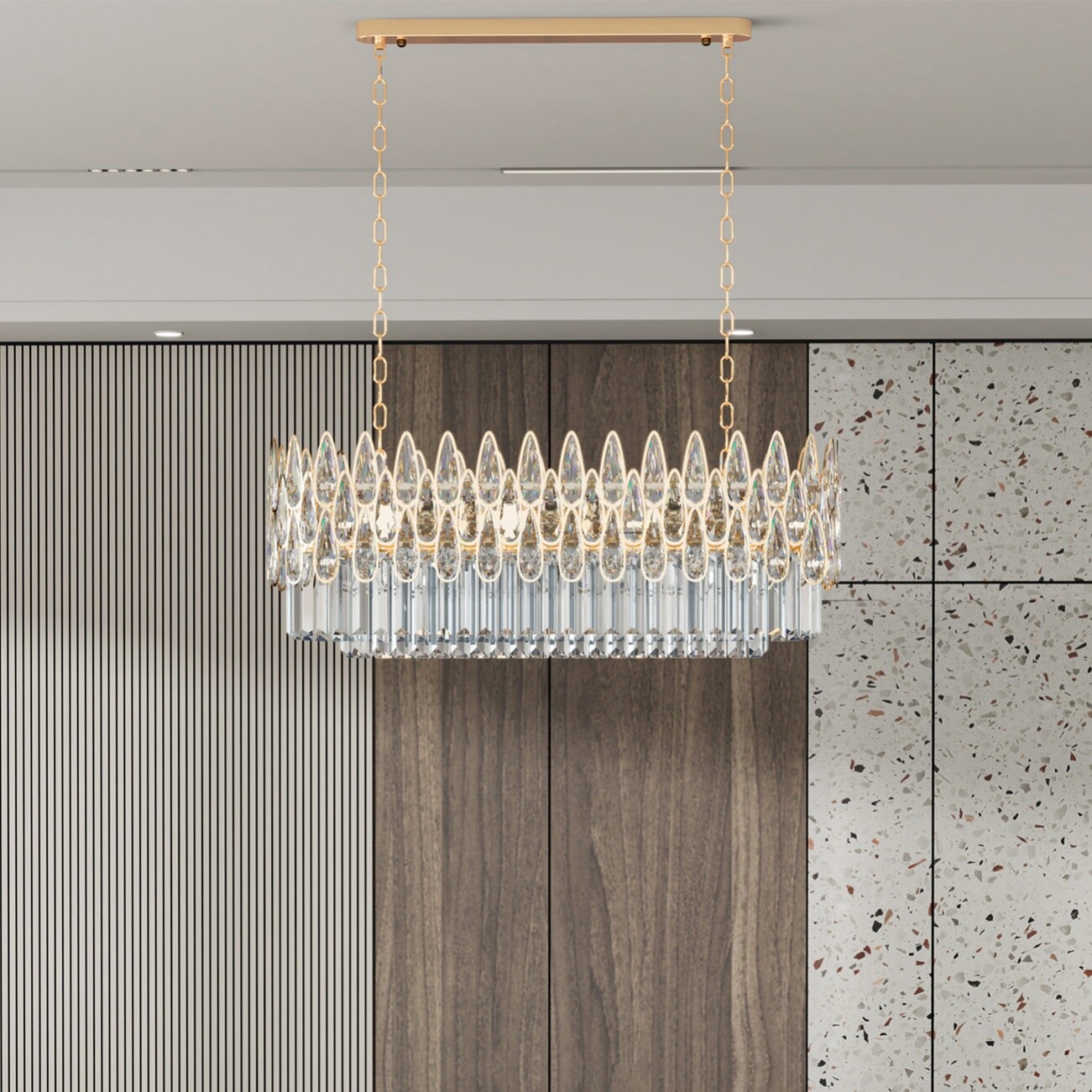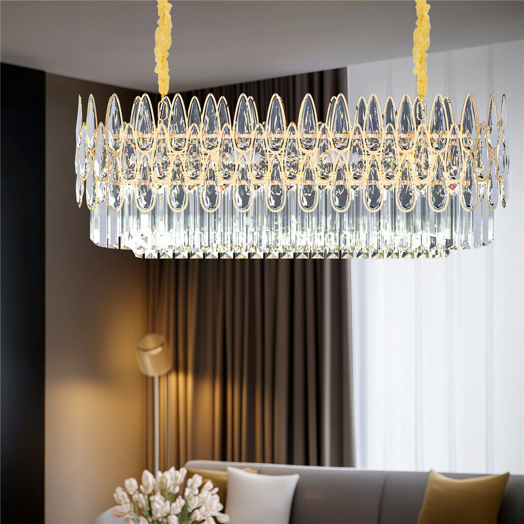Luxury Rectangular Crystal Chandelier Raindrop Crystal Pendant Lamp with 3 Color